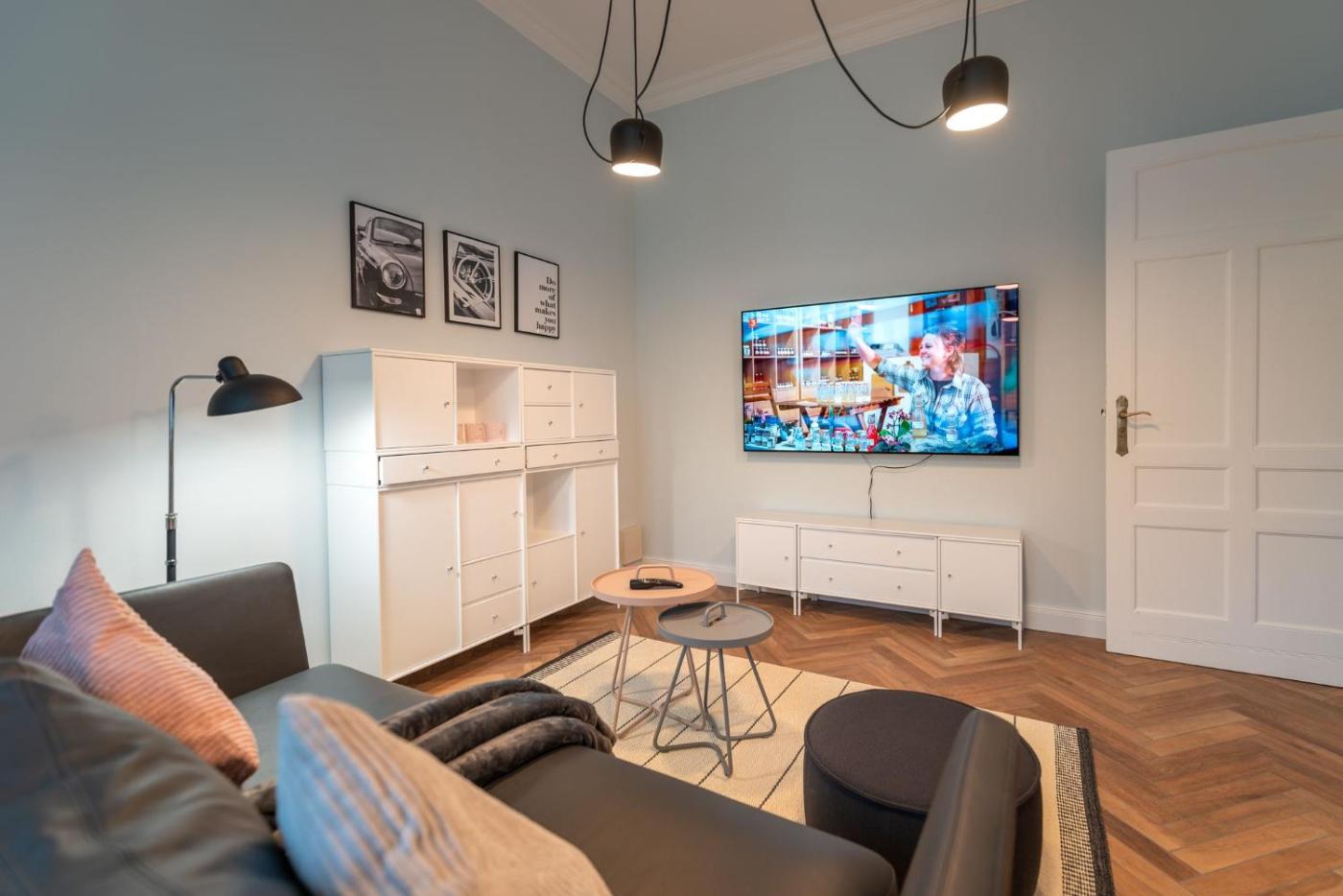 Apartment mit Balkon. This apartment includes 1 living room, 1 separate bedroom and 1 bathroom with a walk-in shower and a hairdryer. In the well-equipped kitchenette, guests will find a refrigerator, a dishwasher, kitchenware and an oven. Boasting a balcony with ancourtyard view, this apartment also offers a coffee machine and a flat-screen TV. The unit has 1 bed.