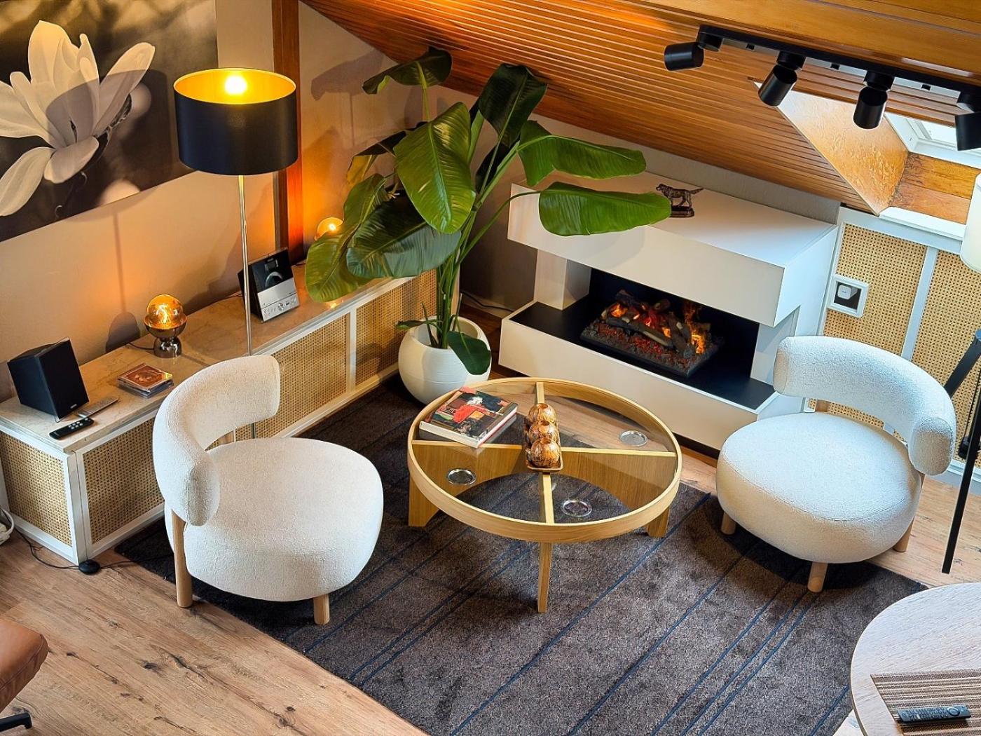 Studio mit Terrasse. Guests will have a special experience as this studio offers a fireplace. The well-fitted kitchen features a dishwasher, kitchenware, an oven and a microwave. This studio includes a TV with streaming services, a private bathroom as well as a balcony with garden views. The unit offers 1 bed.