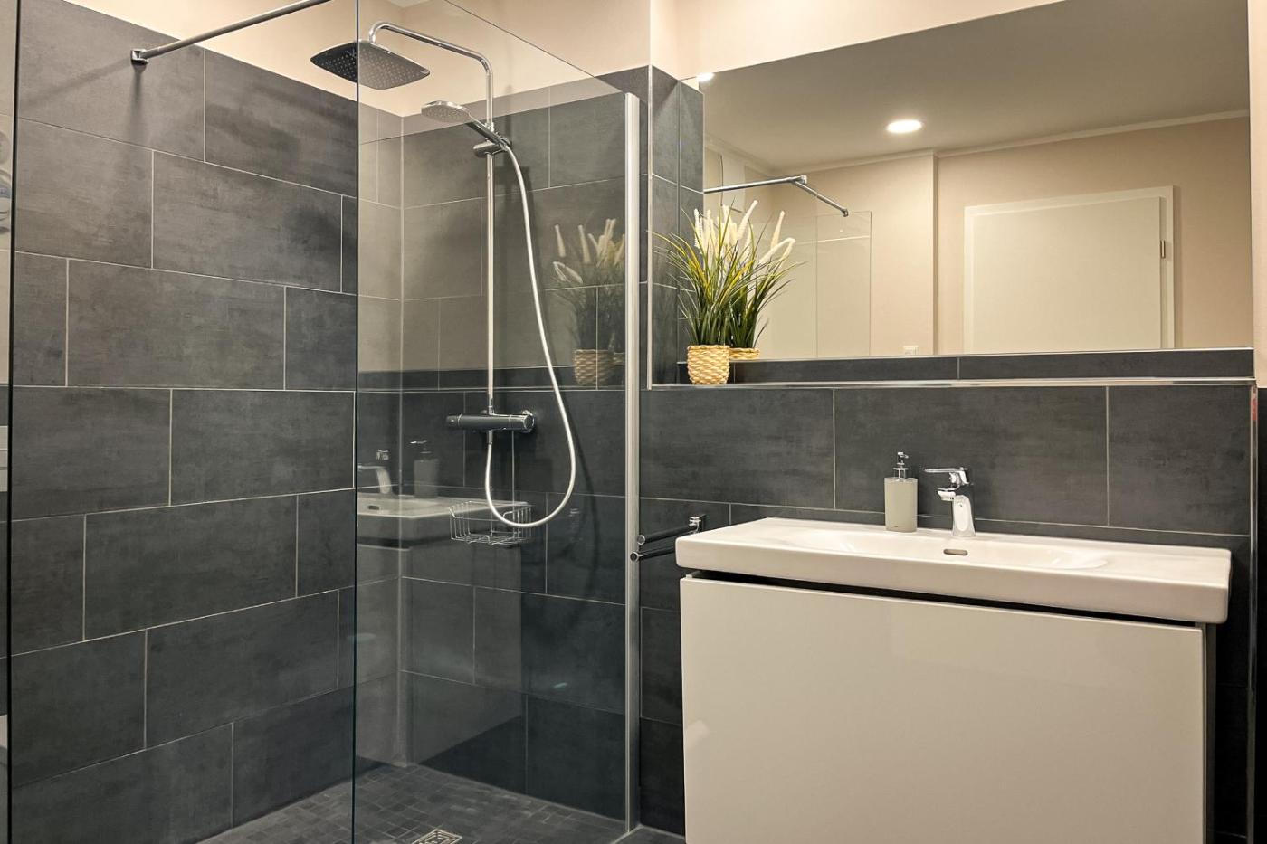 Apartment mit Balkon. This apartment offers a sauna. This apartment comprises a kitchen, a seating area, 1 separate bedroom and 1 bathroom with a shower and a hairdryer. The well-equipped kitchen features a stovetop, a refrigerator, kitchenware and an oven. Featuring a balcony with garden views, this apartment also provides a washing machine and a TV. The unit offers 1 bed.