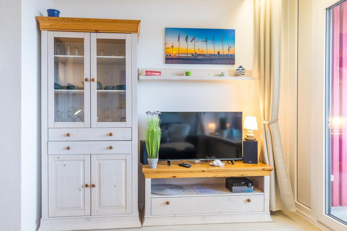 Apartment mit Meerblick. This apartment features a pool with a view. This apartment comprises 1 living room, 1 separate bedroom and 1 bathroom with a shower. The well-equipped kitchen features a stovetop, a refrigerator, a dishwasher and kitchenware. Featuring a balcony with sea views, this apartment also provides a washing machine and a TV with satellite channels. The unit offers 2 beds.
