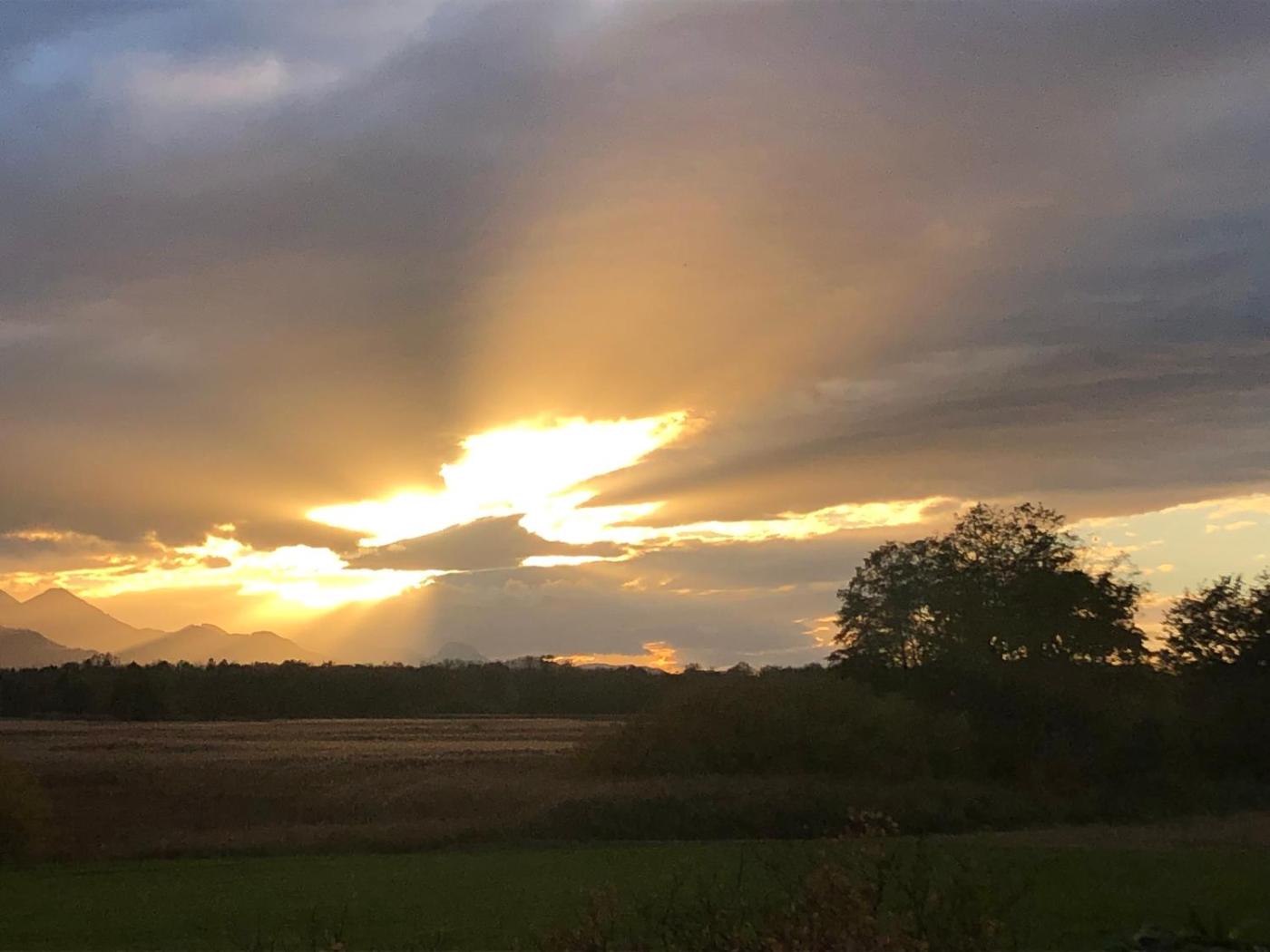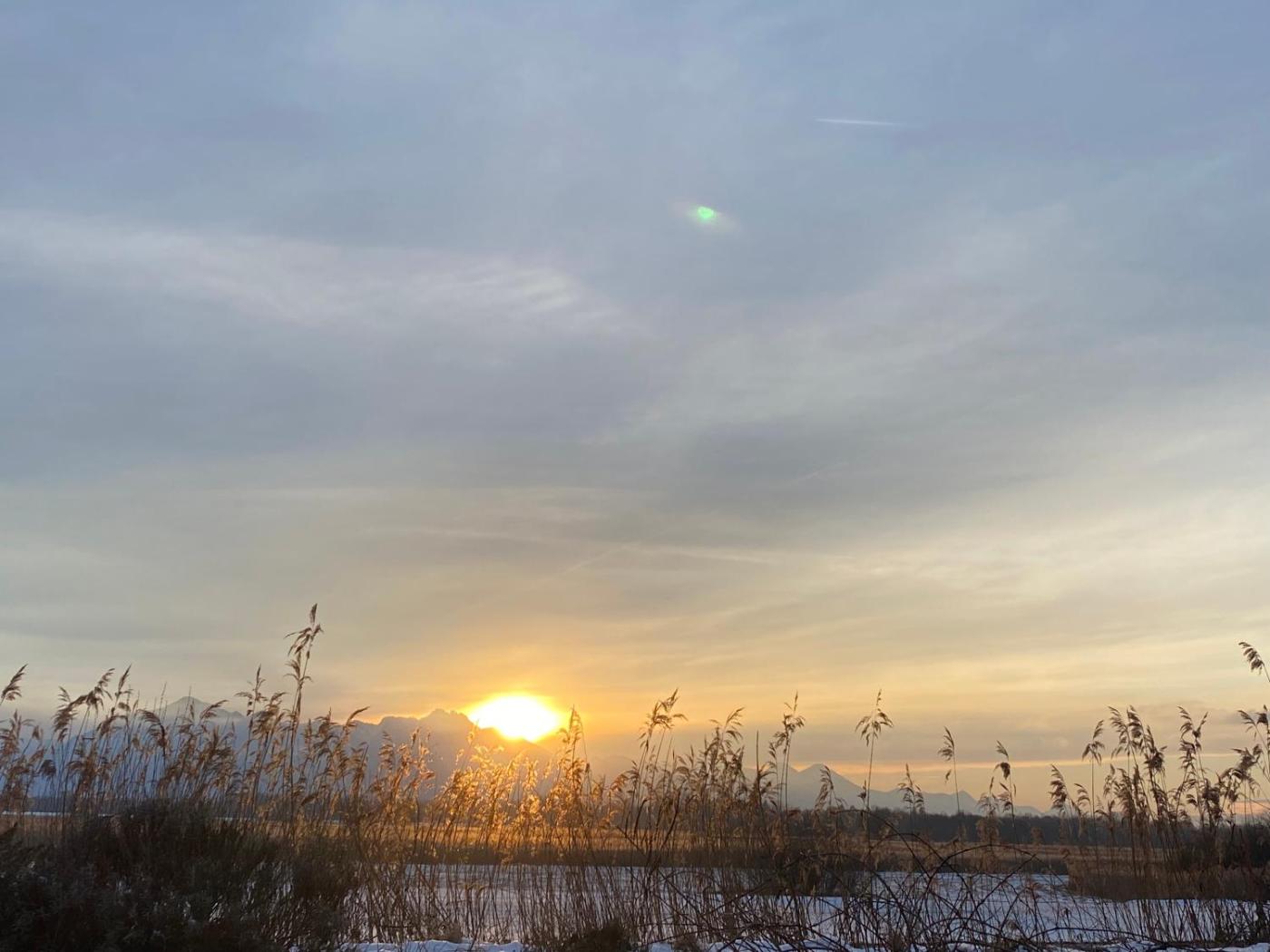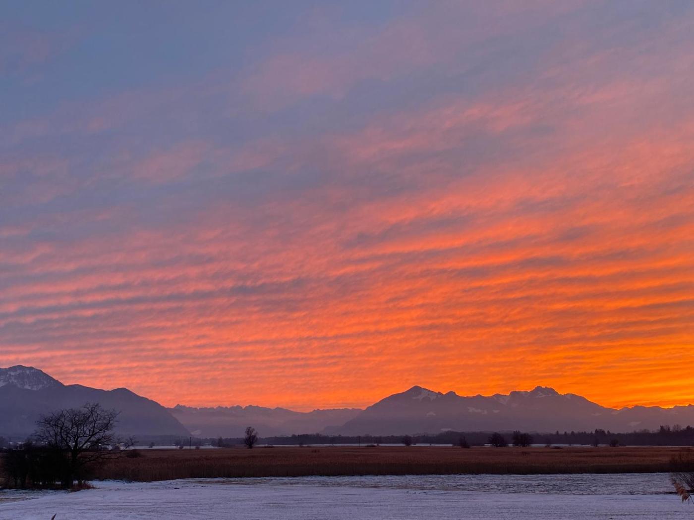 Traumhafte Familien Ferienwohnung am Chiemsee Bergpanorama Sonnenuntergang Terrasse Grillplatz für bis zu 6 Personen