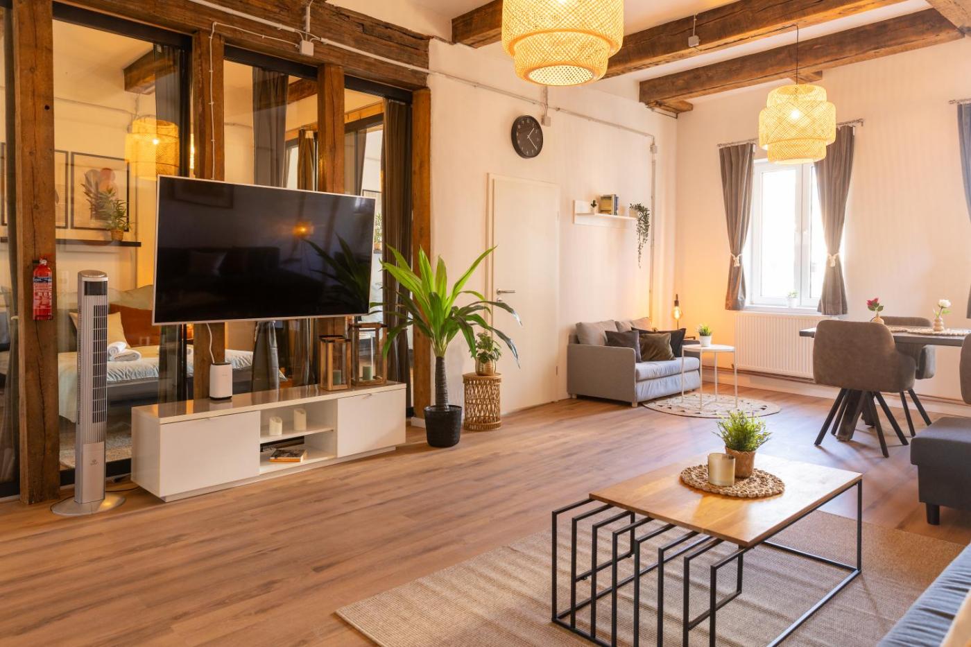 Loft. Featuring a private entrance, this spacious apartment also consists of 1 living room, 3 separate bedrooms and 1 bathroom with a shower. Meals can be prepared in the kitchen, which is equipped with a stovetop, a refrigerator, a dishwasher and kitchenware. The apartment provides a flat-screen TV with streaming services, a washing machine, a tea and coffee maker, a seating area as well as city views. The unit offers 4 beds.