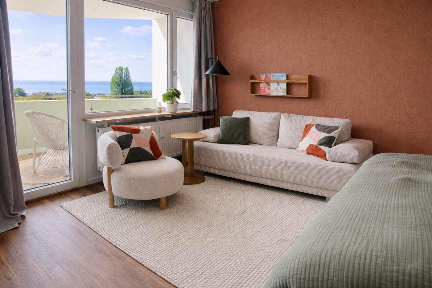 Apartment mit 1 Schlafzimmer. The fully equipped kitchenette has a stovetop, a refrigerator and kitchenware. The apartment offers a flat-screen TV with streaming services, a private entrance, soundproof walls, a tea and coffee maker as well as lake views. The unit has 1 bed.