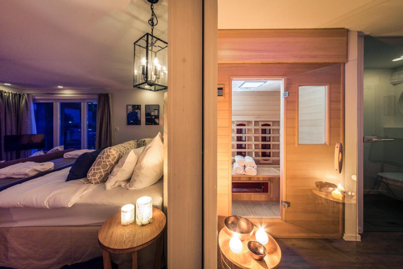 Hausboot - Suite lV - mit Infrarotsauna. This holiday homes special feature is the sauna. Featuring a private entrance, this holiday home also comprises 1 bedroom, a seating area and 1 bathroom with a walk-in shower and a bath. Meals can be prepared in the kitchenette, which is equipped with a stovetop, a refrigerator, a dishwasher and kitchenware. Boasting a terrace with lake views, this holiday home also provides a tea and coffee maker and a flat-screen TV with satellite channels. The unit offers 1 bed. ;
