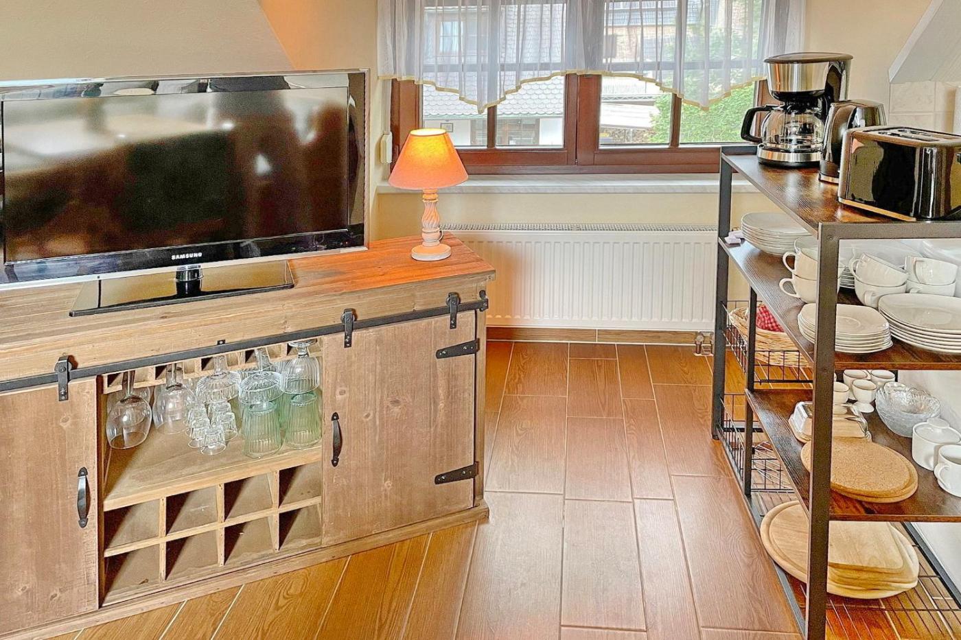 Diese Ferienwohnung besteht aus 2 separaten Schlafzimmern, einer voll ausgestatteten Küchenzeile mit einem Kühlschrank und einer Herdplatte sowie 1 Badezimmer.