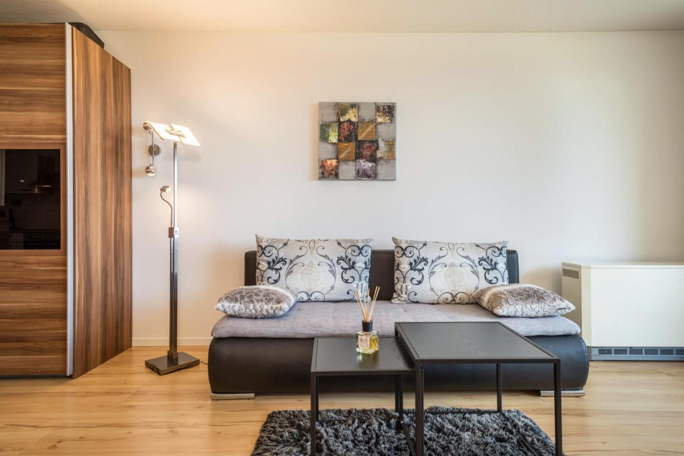 Superior Apartment mit 1 Schlafzimmer und Balkon. The apartment features 1 bedroom and 1 bathroom with a shower and free toiletries. The fully equipped kitchen has a dishwasher, kitchenware, an oven and a toaster. Featuring a balcony with lake views, this apartment also provides a washing machine and a TV with satellite channels. The unit offers 2 beds.