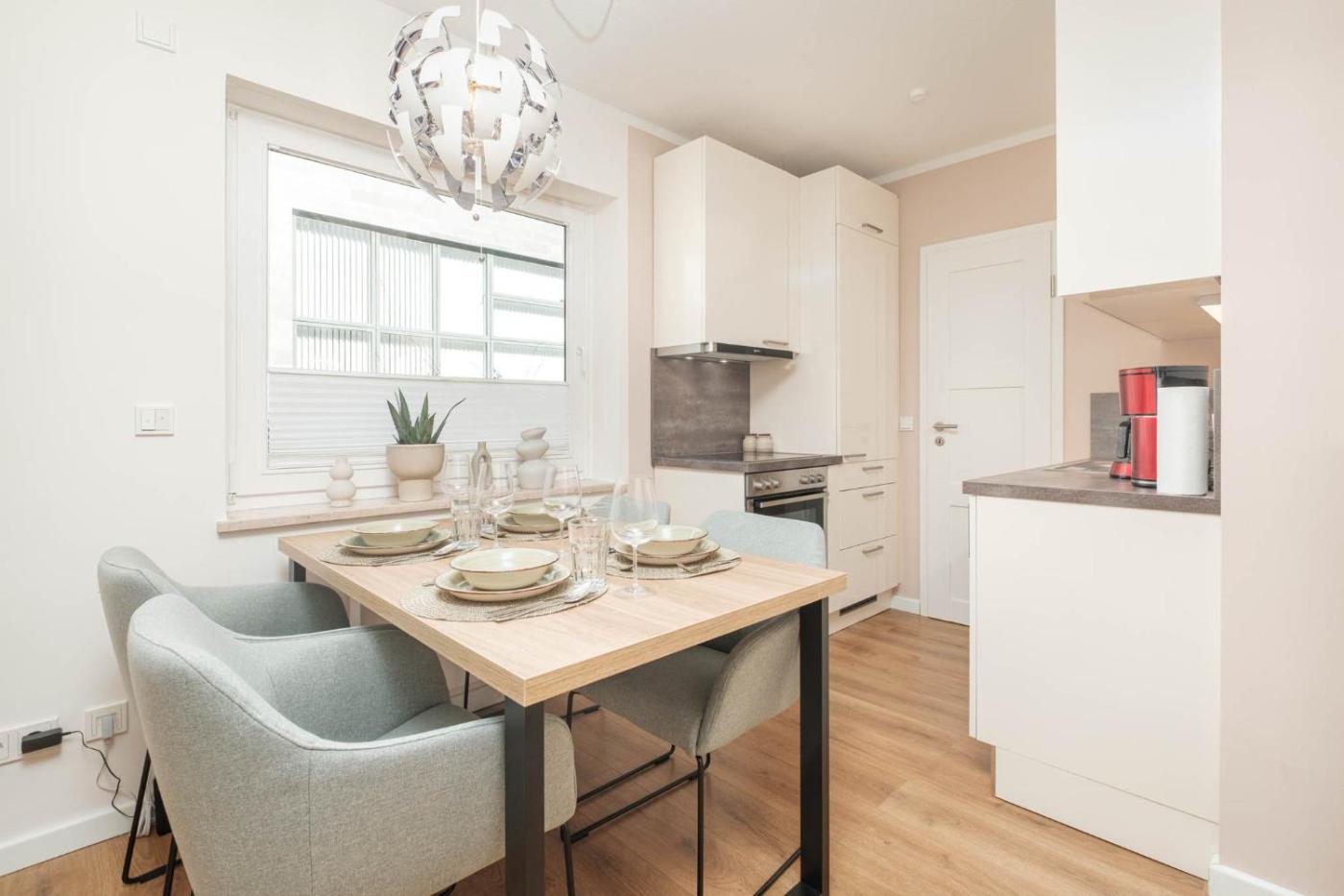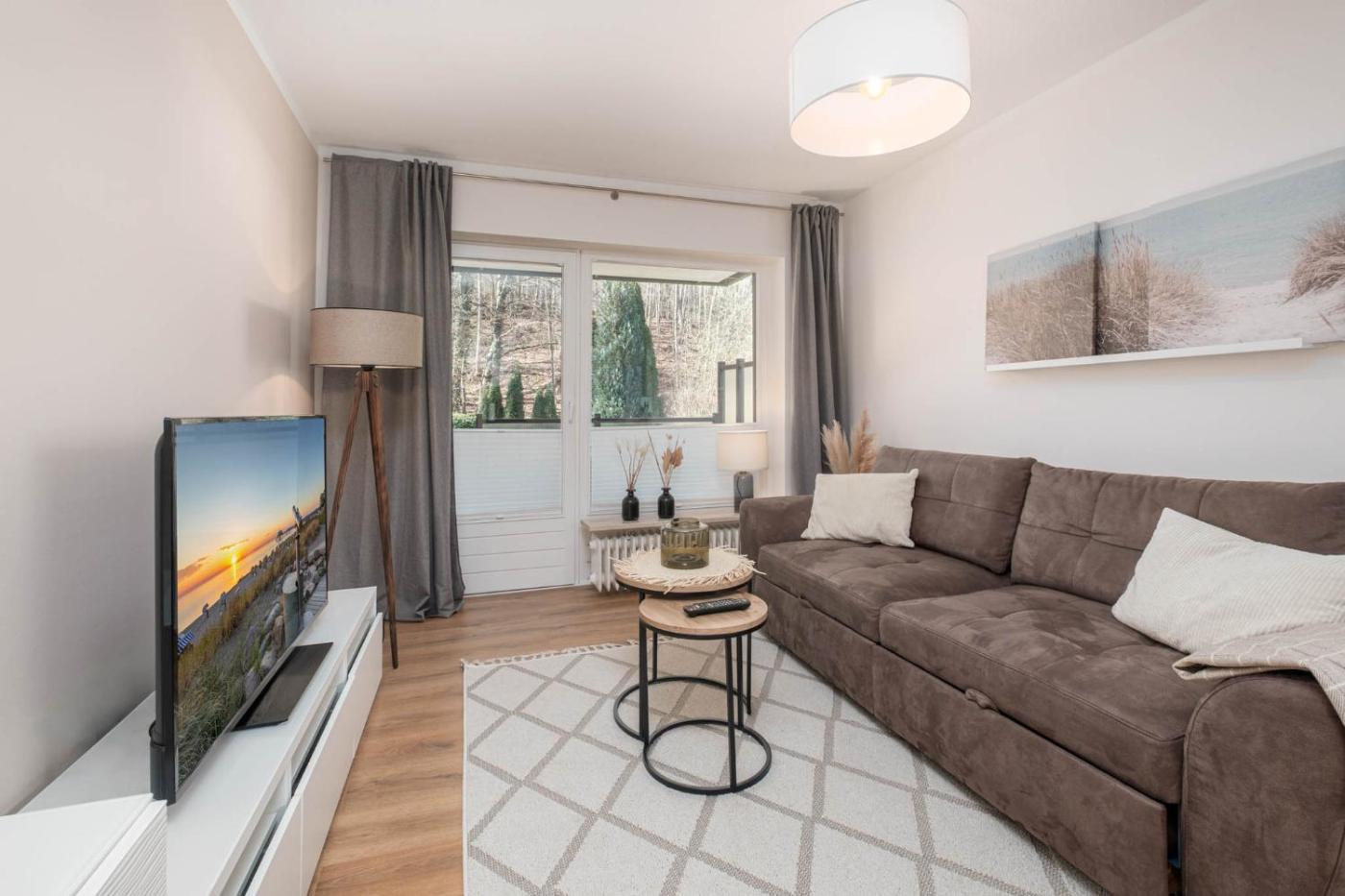 Apartment. This apartment comes with 1 living room, 1 separate bedroom and 1 bathroom with a shower. Guests can make meals in the kitchen that features a stovetop, a refrigerator, a dishwasher and an oven. Boasting a balcony, this apartment also features a washing machine, an electric kettle and a TV. The unit has 2 beds.