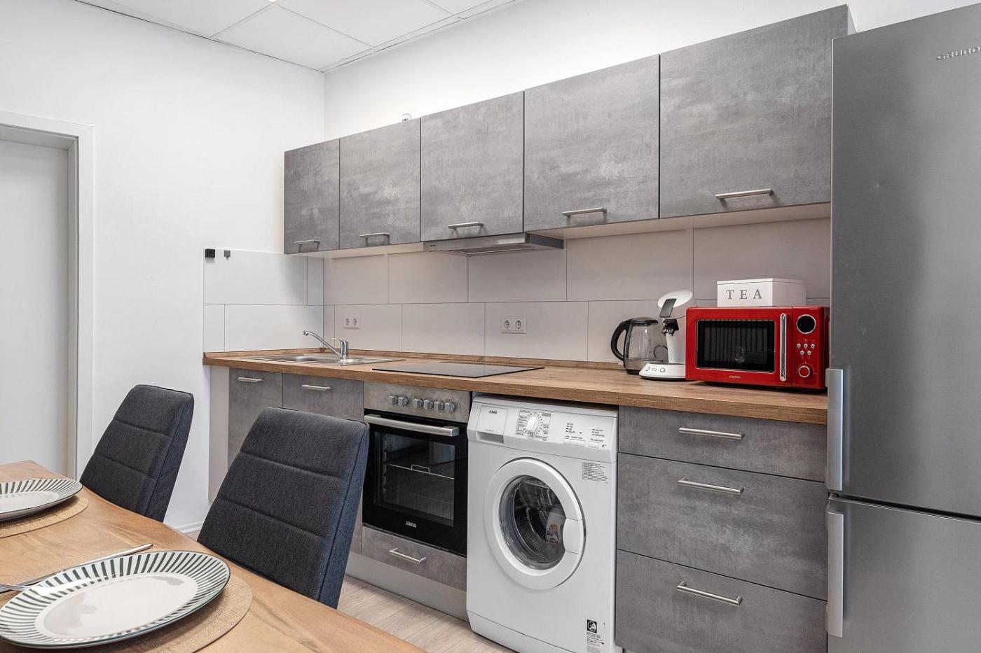Superior Apartment mit Stadtblick. This spacious apartment consists of 1 living room, 1 separate bedroom and 1 bathroom with a shower and free toiletries. Guests can make meals in the kitchen that is equipped with a dishwasher, kitchenware, an oven and a microwave. This apartment features a washing machine, a coffee machine, a TV and city views. The unit offers 4 beds.