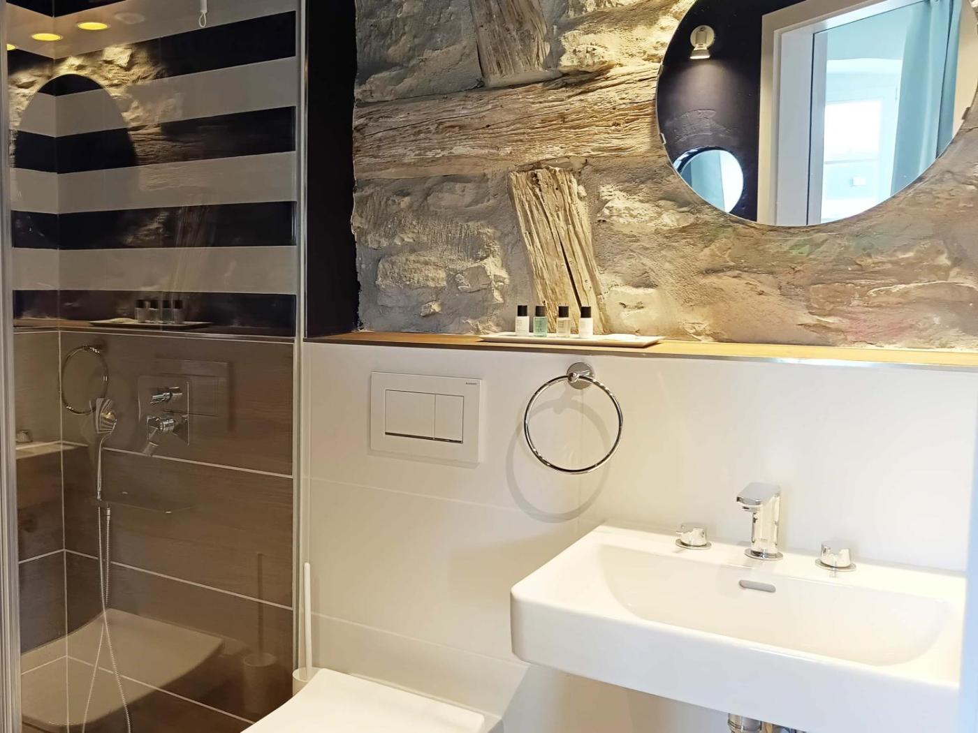 Doppelzimmer mit eigenem Bad. Providing free toiletries, this double room includes a private bathroom with a walk-in shower and a hairdryer. This double room features a private entrance, flat-screen TV with streaming services, city views, as well as winechampagne for guests. The unit offers 1 bed. ;